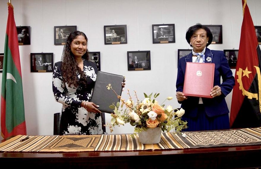 ސިޔާސީ ގުޅުން ގާއިމުކޮށް އެއްބަސްވުމުގައި ސޮއިކުރެއްވީ ނިއު ޔޯކުގެ ރާއްޖޭއިން އދ. އަށް ކަނޑައަޅާފައިވާ ދާއިމީ މިޝަންގައި ބޭއްވި ރަސްމިއްޔާތެއްގަ އެވެ. ރާއްޖޭގެ ފަރާތުން މި އެއްބަސްވުމުގައި ސޮއިކުރެއްވީ އދ. އަށް ރާއްޖެއިން ކަނޑައަޅުއްވާފައިވާ ދާއިމީ ސަފީރު ތިލްމީޒާ ހުސެއިން އެވެ. އެންގޯލާގެ ފަރާތުން ސޮއިކުރެއްވީ އެ ގައުމުން އދ. އަށް ކަނޑައަޅުއްވާފައިވާ ދާއިމީ ސަފީރު މާރިއާ އެވެ.