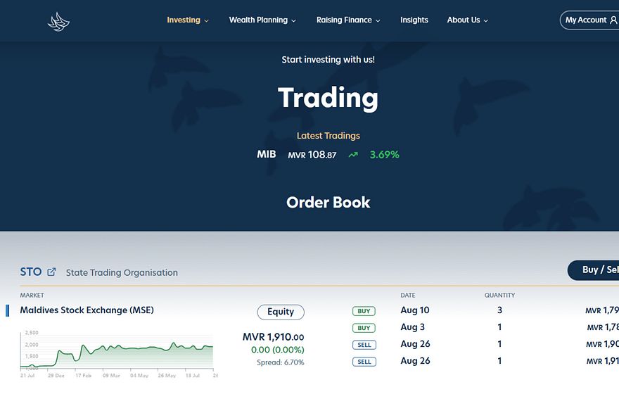 ހިއްސާގައި އިންވެސްޓް ކުރަން ބޭނުންވާ ފަރާތްތަކަށް، ފަސްޓް ނެޝަނަލް ޓްރޭޑިން ޕްލެޓްފޯމް މެދުވެރިކޮށް ހިއްސާ ގަންނަން އެދެވޭނެ އެވެ. އަދި ވިއްކަން ބޭނުންވާ ފަރާތްތަކަށް ހަމަ މި ޕްލެޓްފޯމް މެދުވެރިކޮށް ހިއްސާ ވިއްކަން ހުށަހެޅުމުގެ ފުރުސަތު ލިބެ އެވެ.