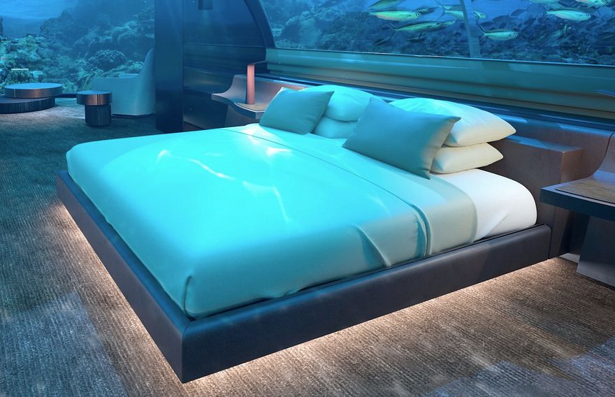 ދެ ބުރިއަށް ހަދާ އެ ގޭގެ ނިދާ ކޮޓަރި ހުންނަނީ ކަނޑުއަޑީގަ އެވެ. ކިންގް ސައިޒުގެ ބެޑް ރޫމަކާއި ލިވިން އޭރިއާ އަދި ފާޚާނާއެއް ކަނޑުއަޑީގައި ހުންނަ ސުއިޓްގައި ހުރެ އެވެ. ވަށް ސިޑިއަކުން ފައިބަން ޖެހޭ އެ ސުއިޓް ހުންނަނީ ކަނޑުގެ ލޮނުގަނޑަށް ވުރެ 16.4 ފޫޓު އަޑީގަ އެވެ.