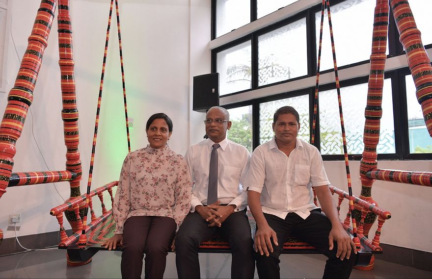 ރާއްޖޭގައި ލިޔެލާ ޖެހުމުގެ މަސައްކަތުގައި އެންމެ ކުރީގައި އުޅޭ ބ.ތުޅާދު އަށް އުފަން އުމުރުން 40 އަހަރުގެ އަބްދުލް އަޒީޒުގެ ބުރަ މި މަސައްކަތަށް ފަންނު އެކްސްޕޯގެ ރަން ވަނަ ލިބި، އަދި ރައީސް އިބްރާހިމް މުހައްމަދު ސޯލިހު ހިތްޕުޅާވެ އެ ބައްލަވައިގަތުމުން ލިބުނު ޝަރަފު ވަނީ އިތުރުވެފަ އެވެ.
