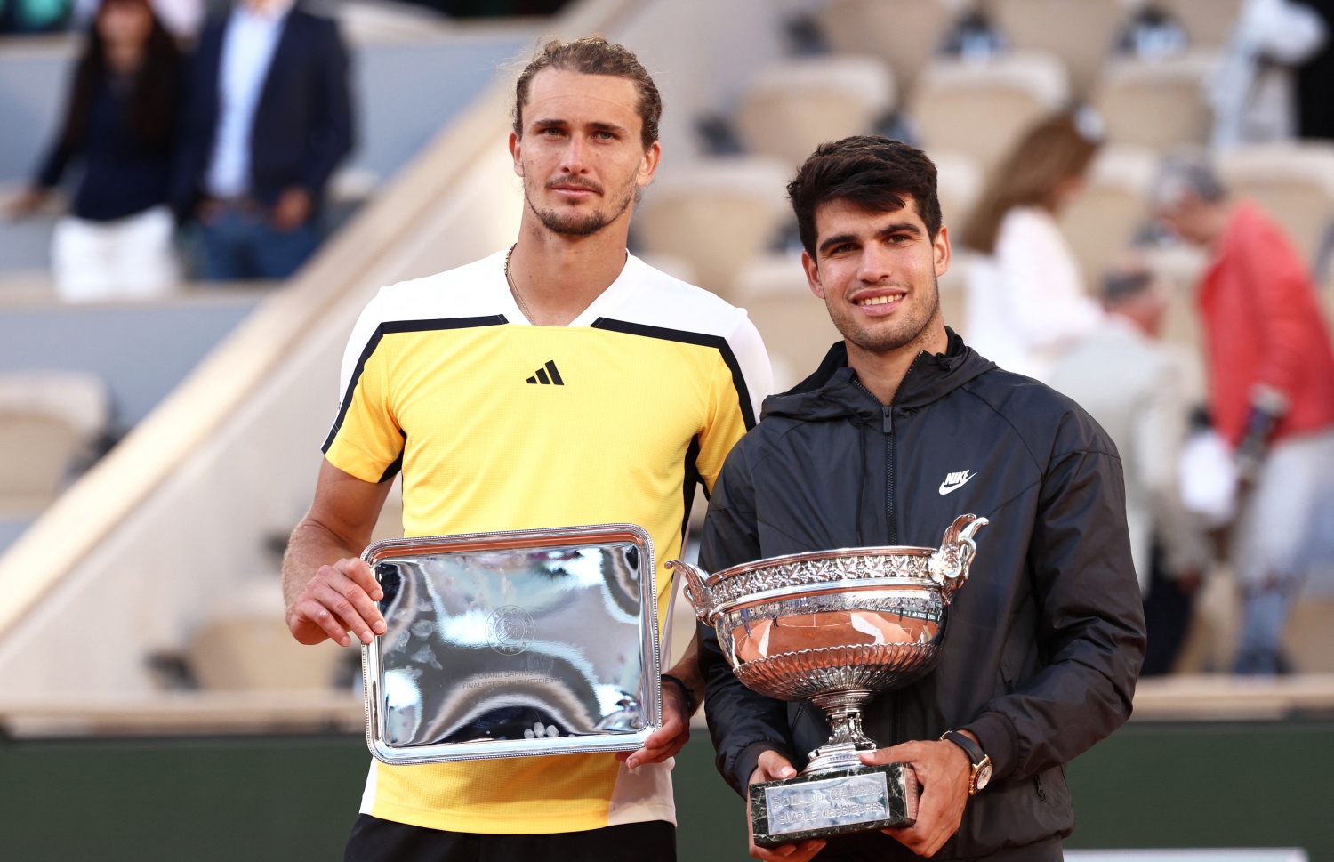 ޕެރިސް (ޖޫން 10) - ފަހަތުން އަރައި ފަސް ސެޓު ކުޅެގެން އަލެކްޒެންޑަ ޒްވެރޭވް ބަލިކޮށް ސްޕެއިންގެ ކާލޯސް އަލްކަރާޒް, 21, ފުރަތަމަ ފަހަރަށް ފްރެންޗް އޯޕަން ގްރޭޞްޑް ސްލޭމް ޓެނިސް މުބާރާތް ކާމިޔާބު ކޮށްފި އެވެ.