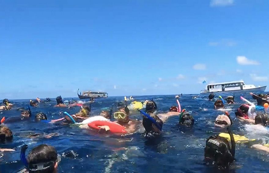 ފިތިބާރުވެގެން، މީހުންނަށް އުނދަގޫވެގެން އުޅޭ މަންޒަރު ވެސް އެ ވީޑިއޯއިން ފެނެ އެވެ. ޓޫރިސްޓުން އެތަނަށް ގެންދިޔަ ދޯނިތަކާއި ލޯންޗުފަހަރު ވެސް އެ މީހުންގެ ވަށައިގެން ތިބޭތީ ފެނެ އެވެ. މުޅި ތަން އޮތީ މީހުންނާއި ދޯނިފަހަރުން ތޮއްޖެހިފަ އެވެ.