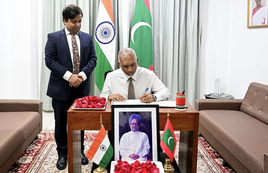 އިންޑިއާގެ ކުރީގެ ބޮޑު ވަޒީރު މަންމޯހަން ސިންގުގެ ހަނދާނުގައި ރާއްޖޭގައި ހުންނަ އިންޑިއާގެ ހައި ކޮމިޝަނުގައި ހުޅުވާފައިވާ ތައުޒިޔާގެ ދަފްތަރުގައި ރައީސް ޑރ. މުހައްމަދު މުއިއްޒު ސޮއި ކުރައްވައިފި އެވެ.