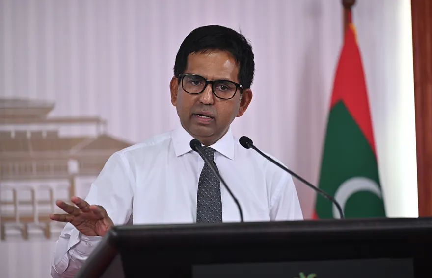 އިކޮނޮމިކް މިނިސްޓަރު މުހައްމަދު ސައީދު ނޫސްވެރިންނަށް މައުލޫމާތު ދެއްވަނީ-- ފޮޓޯ: ރައީސް އޮފީސް