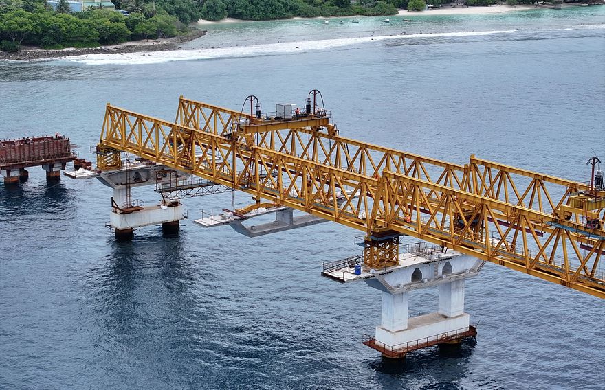 ބްރިޖްގެ އެއް ތަނބު އަނެއް ތަނބާ ގުޅުވައިލަނީ ޕްރީ-ކާސްޓް ސެގްމަންޓްތަކަކުން ކަމަށް ވާއިރު، އޭގެ ފުރަތަމަ ސެގްމެންޓް ވިލިމާލެއާ ދިމާލުން ގުޅުވާލުމުގެ މަސައްކަތް މިހާރު ވަނީ ފަށާފަ އެވެ.