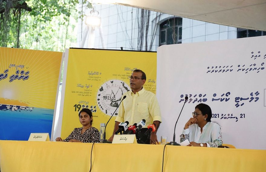 "އަދި އަޅުގަނޑަށް އެނގޭ ތިޔަބޭފުޅުންނަށް އުނދަގޫފުޅު ވާނެ ކަން ވެސް އަޅުގަނޑު ގާތުގައި ބަލަ ރައީސްއޭ ތިހިރީ ހާދަހާ އެހެން ބާވަތަކަށޭ ހެދުން އަޅުއްވައިގެން، ބައްލަވާށޭ ޖައްސަވައިގެން ތިޔަ ހުރި އެއްޗެއް ވެސް. އެހެން ދަންނަވާން ވެސް އުނދަގޫފުޅުވާނެ. ޕީޕީއެމަށް ދިމާވެގެން އެ އުޅެނީ އެ ދަތުރު،" ކުރީގެ ރައީސް ނަޝީދު ވިދާޅުވި އެވެ.