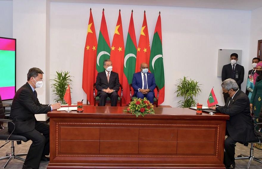 ޗައިނާއިން ރާއްޖެއަށް ހިލޭ އެހީ ދޭން ނިންމީ ޗައިނާގެ ފޮރިން މިނިސްޓަރު ވަންގް ޔީ ރާއްޖެއަށް މިހާރު ކުރައްވަމުން ގެންދަވާ ދަތުރުފުޅުގެ ތެރެއިން ދެ ގައުމުގެ ދެމެދުގައި މިއަދު ބޭއްވި މަޝްވަރާތަކަށް ފަހު ދެ ގައުމުން ސޮއިކުރި އެއްބަސްވުންތަކުގެ ދަށުންނެވެ.