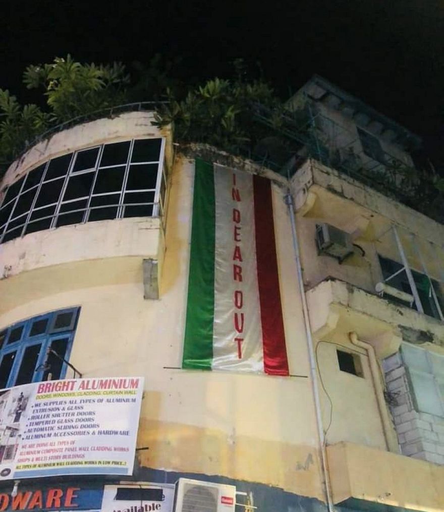 އިންޑިއާ އައުޓް ކެމްޕޭން ހުއްޓުވަން ރައީސް އިބްރާހިމް މުހައްމަދު ސޯލިހު ގަރާރެއް ނެރުއްވުމާ ގުޅިގެން، އިދިކޮޅު ފަރާތްތަކުން މިހާރު އެ ސްލޯގަން އިނގިރޭސި ބަހުން ބޭނުންކުރަނީ އިންޑިއާގެ ސްޕެލިން ބަދަލު ކޮށްގެންނެވެ. މާލޭގެ ގެއެއްގައި ރޭ ދަމާފައިވާ ބެނާގައި ލިޔެފައި ވަނީ "INDEAR OUT" އެވެ.