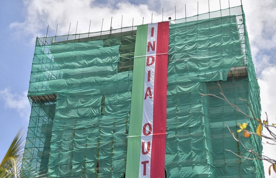 ރާއްޖޭގައި ތިބި އިންޑިއާގެ ސިފައިން ފައިބައިގެން ދިއުމަށް ގޮވާލައި އިދިކޮޅު ފަރާތްތަކުން އިސްވެ ތިބެ ހިންގާ "އިންޑިއާ އައުޓް" ކެމްޕެއިންގެ ދަށުން ޔާމީންގެ ގެކޮޅު ހ. ދޫވެހީގައި ހަރުކުރި ބެނާ މިދިޔަ މަހު ފުލުހުން ނެގީ ކްރިމިނަލް ކޯޓުގެ އަމުރެއްގެ ދަށުންނެވެ.