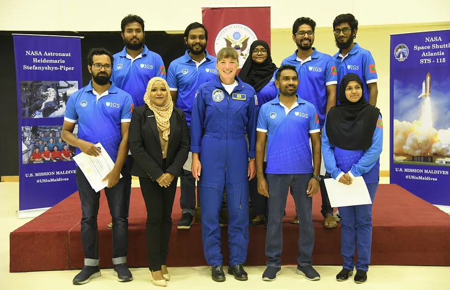 ރާއްޖޭގައި މިހާރު ހުންނެވި ނާސާގެ ކުރީގެ މަޝްހޫރު އެސްޓްރޮނޯޓް ހެއިޑީމެރީ ސްޓެފަނީޝަން ޕައިޕާ، ދިވެހި ސްޕޭސް މިޝަން "އަޒުމް"ގެ ޓީމާ ބައްދަލުކުރައްވައި އެ ޓީމުގެ މަސައްކަތަށް ތައުރީފު ކުރައްވައިފި އެވެ.