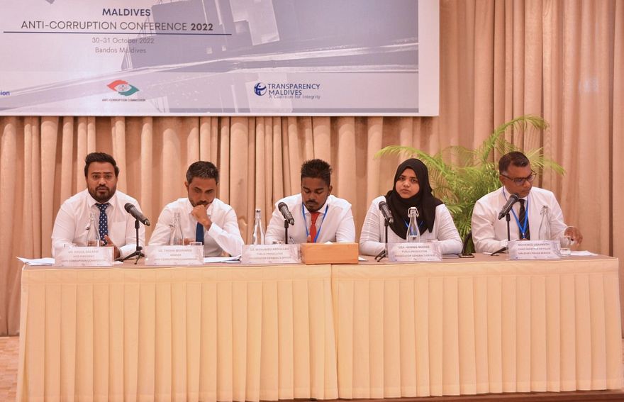 އޭސީސީ އާއި ޓްރާންސްޕޭރަންސީ މޯލްޑިވްސް އާއި ފުލުހުންނާއި ކަމާގުޅޭ އެހެން އިދާރާތަކުގެ ވެސް ބައިވެރިވުމާ އެކު ކުރިއަށް ގެންދާ އެންޓި ކޮރަޕްޝަން ކޮންފަރެންސްގައި އޭސީސީގެ ނައިބު ރައީސް އަބްދުއްސަލާމް ވަނީ އެސްއޯއީތައް މެދުވެރިވެ ހިޔާނާތް ހިންގާ ގޮތުގެ ތަފްސީލް ހިއްސާކުރައްވައިފަ އެވެ.