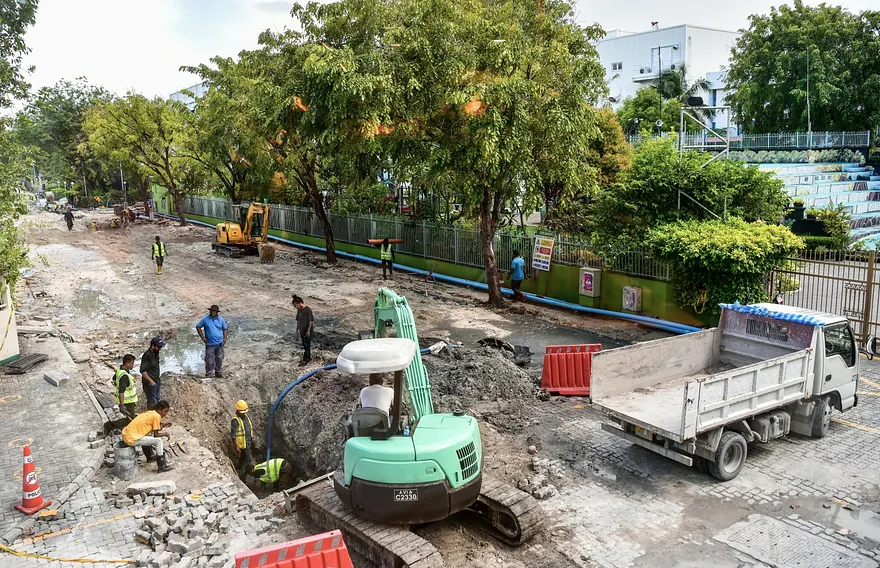 "ބިން ހަމަޖެހުނުހާ އަވަހަކަށް އާރުޑީސީގެ ތާރު މެޝިން ބަހައްޓައިގެން، އަމީނީ މަގުގެ ދެން އޮތް ބައިގައި ތާރު އެޅުމުގެ މަސައްކަތް ކުރިއަށް ގެންދާނެ."