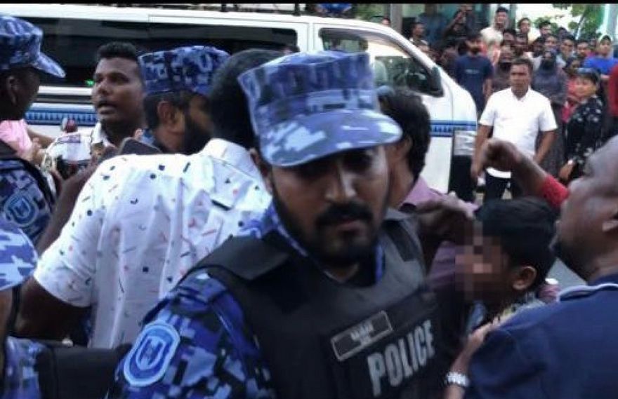 މުޒާހަރާ ކުރި ވަގުތު ސައިކަލުގައި ކުއްޖަކު ގޮވައިގެން ދަމުން ފޮޓޯއެއް ނެގި މީހަކު އަނިޔާވެރިކަމާ އެކު އެ ކުއްޖާ ކުރިމަތީގައި ހައްޔަރުކުރީ ކަމަށް ބުނެ ޕީޕީއެމް/ޕީއެންސީން ބަޔާނެއް ނެރެ ފުލުހުން ކުށްވެރިކޮށްފައިވެ އެވެ. އަދި އެކަމާ ގުޅިގެން ސޯޝަލް މީޑިއާގައި ވެސް ފުލުހުންނަށް ފާޑުކިޔުން ވަނީ އަމާޒުވެފަ އެވެ.