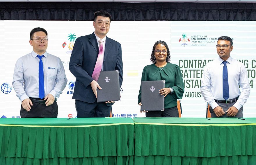 ރަށްރަށުގައި ސޯލާ ހަކަތައަށް ހާއްސަ ބެޓްރީ އެނާޖީ ސްޓޯރޭޖް ސިސްޓަމް ގާއިމްކުރަން ޗައިނާގެ ކުންފުންޏަކާ 23.9 މިލިއަން ޑޮލަރު (368 މިލިއަން ރުފިޔާ) އަށް މިއަދު ހަވާލުކޮށްފި އެވެ.