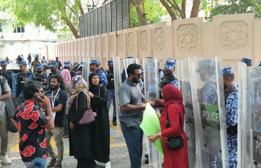 އަދި މަޖިލިސް އިދާރާގެ ބޭރުގައި ސަރުކާރަށް ނިސްބަތްވާ މީހުން އެއްވެ ދަނީ މުޒާހަރާ ކުރަމުންނެވެ.