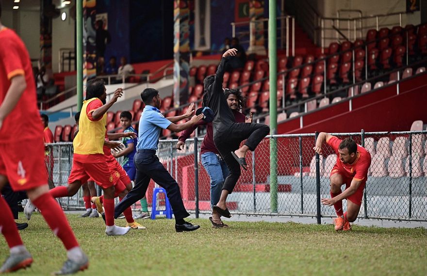ހަމަނުޖެހުމާ ގުޅިގެން މެޗުގެ ސެކިއުރިޓީ ބަލަހައްޓަން ތިބި ފުލުހުންނަށް އެހީވުމަށް އިތުރު ފުލުހުން ވެސް އެ ދުވަހު ދަނޑަށް ވަނެވެ.