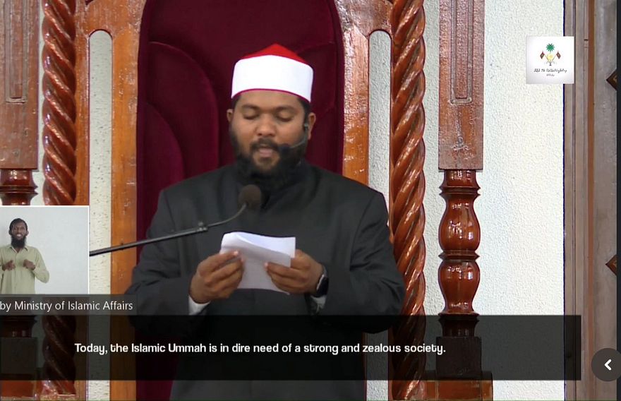 ނަމަވެސް ފަހުން ނިންމީ ދިވެހިބަހުން ހުތުބާ ކިޔުމަށް ފަހު، ޓީވީ ލައިވްގައި އިނގިރޭސި ސަބްޓައިޓަލް އެރުވުމަށެވެ.