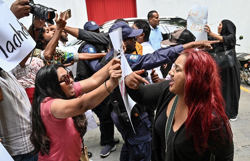 ޕީއެންސީގެ އެކްޓިވިސްޓުން މަޖިލިސް ދޮށަށް އެއްވެ އަޑު އުފުލަމުން ދަނީ ގާނޫނުއަސާސީއަށް ގެންނަ އިސްލާހަށް ތާއިދުކޮށް، އިދިކޮޅު އެމްޑީޕީއަށް ފާޑުކިޔުމަށެވެ. އެމްޑީޕީން މަޖިލިސް ދޮށުގައި އަޑު އުފުލަމުން ދަނީ "ގާނޫނުއަސާސީގެ ދިފާއުގައި" ކަމަށް ބުނެ އެވެ.
