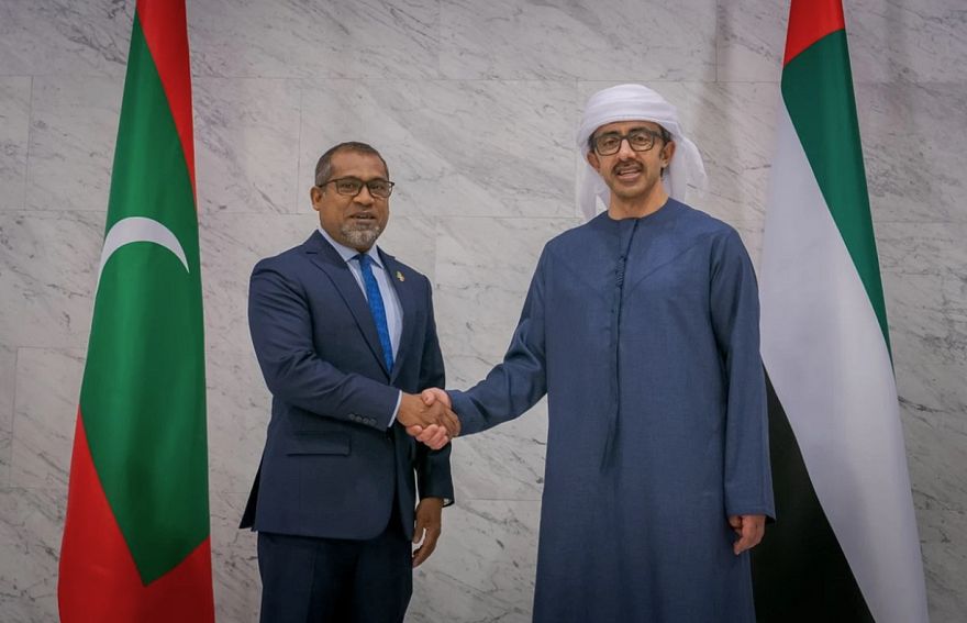 "އަދި ދެ ގައުމުން އިސްކަންދޭ ދާއިރާތައް ހޯދައި އެ ކަންކަން ކުރިއަށް ގެންދިއުމުގައި އެއްބާރުލުން ދިނުމުގެ ޔަގީންކަމާއި ދިވެހިރާއްޖެ އާއި ޔޫއޭއީއާ ދެމެދު އޮންނަ ޒަމާންވީ ގުޅުން އިތުރަށް ބަދަހިކުރެއްވުމަށް މަސައްކަތްކުރައްވާނެ ކަމުގެ ޔަގީންކަން ދެ ބޭފުޅުން އެރުވި އެވެ،" ބަޔާނުގައި ބުންޏެވެ.