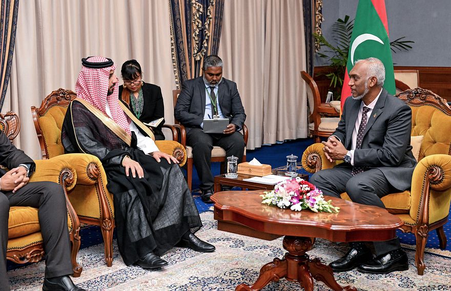 ރައީސް އޮފީހުގައި ބޭއްވި ބައްދަލު ކުރެއްވުމުގައި ރައީސް މުއިއްޒު ވަނީ ދެ ގައުމުގެ ގުޅުން ބަދަހި ކުރަން ސަފީރު ކުރެއްވި މަސައްކަތްތައް ފާހަގަ ކުރައްވައި ޝުކުރު އަދާ ކުރައްވައިފަ އެވެ. އަދި ސައުދީ ސަރުކާރާ އެކު ކުރިއަށް އޮތް ތަނުގައި ވެސް ވަރަށް ގާތްކޮށް މަސައްކަތް ކުރައްވަން ބޭނުންފުޅުވާ ކަމަށް ވިދާޅުވި އެވެ.
