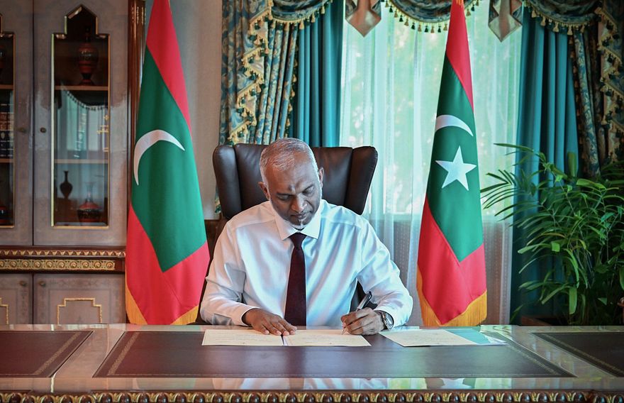 ރައީސް މުއިއްޒު ވަނީ އެ ބިލް ރައްޔިތުންގެ މަޖިލިހުން މިއަދު ފާސްކުރިތާ މާ ގިނައިރުތަކެއް ނުވެ ބިލް ތަސްދީގު ކުރައްވައިފަ އެވެ.