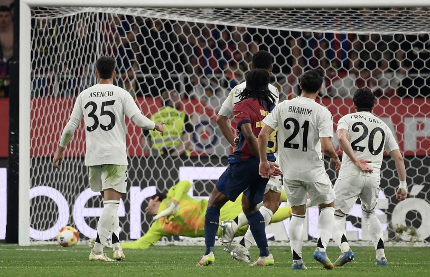 ސެވިލްގައި ރޭ ކުޅުނު މެޗުގެ ފުރަތަމަ ހާފުގައި ބާސެލޯނާ ވަނީ ޕެޑްރީގެ ލަނޑަކުން ލީޑު ނަގައިފަ އެވެ. މިއީ ލަމީން ޔަމާލް ދިން ބޯޅައަކުން އޭނާ ޖެހި ގޯލެކެވެ. އެކަމަކު ދެ ވަނަ ހާފުގައި ކިލިއަން އެމްބާޕޭ ކުޅެން އަރައި ހިލޭޖެހުމަކުން ނަތީޖާ އެއްވަރުކުރި އެވެ. އޭގެ އިރުކޮޅެއް ފަހުން އޮރޭލިއަން ޗުއަމެނީ ބޮލުން ޖެހި ލަނޑަކުން ރެއާލުން ލީޑު ނެގި އެވެ. ނަމަވެސް އިތުރު ވަގުތު ކުޅެން ޖެހުނީ ނިމެން ހަ މިނިޓަށް ވެފައި ވަނިކޮށް ފެރާން ޓޮރޭޒް ލަނޑެއް ޖަހައި ބާސާ އަށް ނަތީޖާ އެއްވަރު ކޮށްދިނުމުންނެވެ