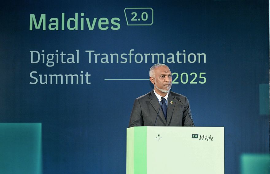 "ރާއްޖެ 2.0" އިފުތިތާހު ކުރުމާއި "މޯލްޑިވްސް ޑިޖިޓަލް ޓްރާންސްފޯމޭޝަން ސަމިޓު" ހުޅުވުމުގެ ރަސްމިއްޔާތުގައި ރައީސް މުއިއްޒު މިރޭ ބައިވެރިވެވަޑައިގަންނަވަނީ.---ފޮޓޯ: ރައީސް އޮފީސް