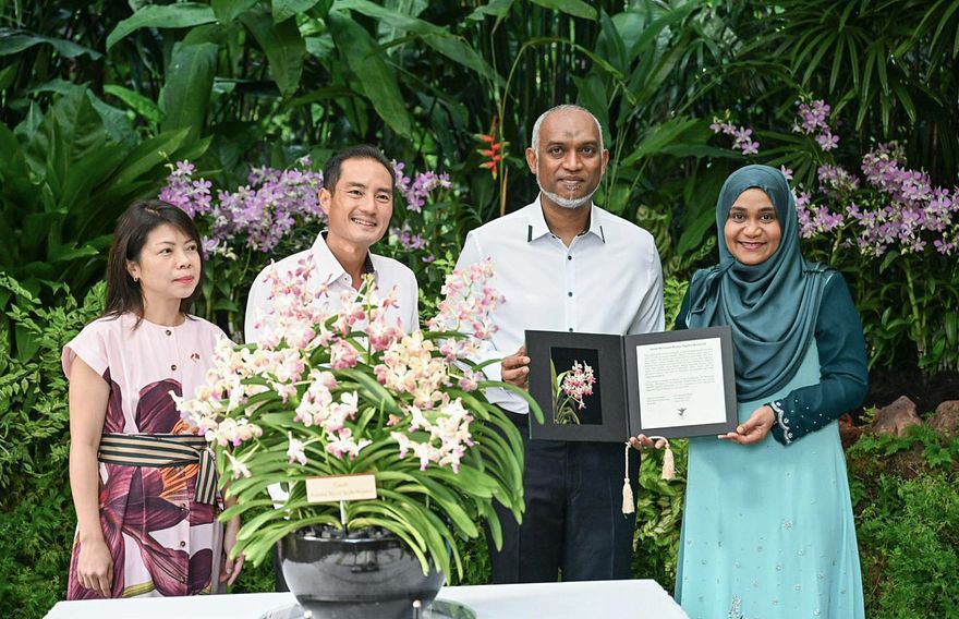 ސިންގަޕޫރުގެ ނޭޝަނަލް އޯކިޑް ގާޑަންގައި ރައީސް ޑރ. މުހައްމަދު މުއިއްޒާއި ފަސްޓް ލޭޑީ ސާޖިދާ މުހައްމަދުގެ ނަމުން އޯކިޑަކަށް ނަން ދީފި އެވެ.