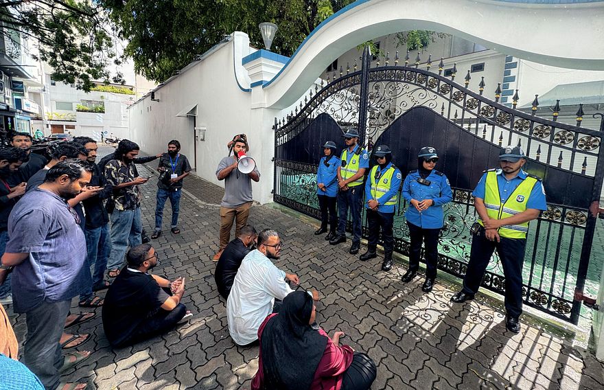 މީޑިއާ ކޮންޓްރޯލް ކުރުމާބެހޭ ބިލް ރައްޔިތުންގެ މަޖިލިހަށް މިއަދު ބަލައިގަތުމާ ގުޅިގެން ރައީސް އޮފީސް ކުރިމަތީގައި އިހުތިޖާޖުކުރުމަށް ފަހު، ރިޔާސީ ގަނޑުވަރު މުލީއާގޭ ކައިރިއަށް ނޫސްވެރިން ދެންމެ އެއްވެ އަޑުއުފުލަން ފަށައިފި އެވެ.