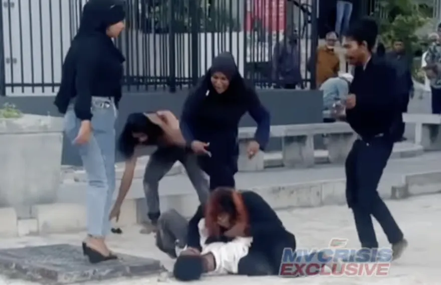 ސޯޝަލް މީޑިއާގައި އާންމު ކޮށްފައިވާ ވީޑިއޯއެއްގައި ފެންނަނީ ހިޔާގެ 7 ވަނަ ޓަވަރު ކައިރީގައި ދެ ފިރިހެނަކު މާރާމާރީ ހިންގާ ތަނެވެ. އެ މީހުން ލައިގެން ތިބި ޓީޝާޓަށް ދަމައި ބާލުވައި ގައިގައި ތަޅާ މަންޒަރު ފެނެ އެވެ. އަދި އެ ތަނުގައި ތިބި ދެ އަންހެނަކު ވެސް އިސްތަށިގަނޑު ހިފައި އެކަކު އަނެކަކަށް އަނިޔާކުރި އެވެ.
