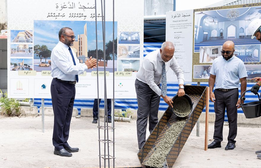 މ. މުއިވެޔޮދޮށުގެ (ބޮޑުގެ) ސަރަހައްދުގައި އަލަށް އިމާރާތްކުރާ ޒަމާނީ މިސްކިތާއި ދައުވާ ސެންޓަރުގެ ބިންގާ ރައީސް ޑރ. މުހައްމަދު މުއިއްޒު މިއަދު އަޅުއްވައި ދެއްވައިފި އެވެ.