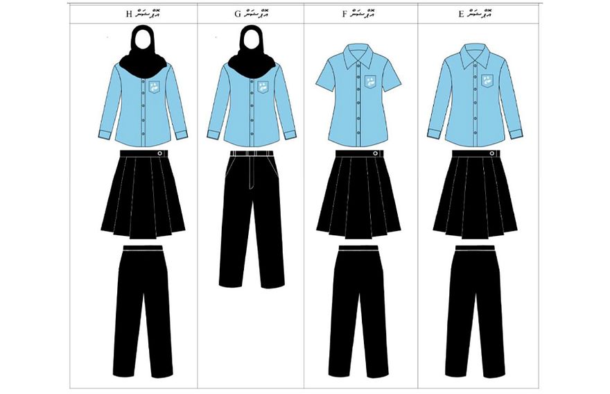 ޔުނިފޯމަށް ގެންނަން ނިންމާފައިވާ ބަދަލުގައި، ރަސްމީ ޔުނިފޯމުގެ މަތީބައި ނުވަތަ ގަމީސް ހުންނަން ޖެހޭނީ ހުދު، ސްކައި ބްލޫ، ޓީލް ގްރީން ނުވަތަ ލައިޓް ރެޑް ކުލައިގަ އެވެ. ރަސްމީ ޔުނީފޯމުގެ ފަޓުލޫނު/ސްކާޓް/ސޯޓު ހުންނަން ޖެހޭނީ ކަޅު ނުވަތަ ނޭވީ ބްލޫ ކުލައިން ކަމަށް އުސޫލްގައިވެ އެވެ.