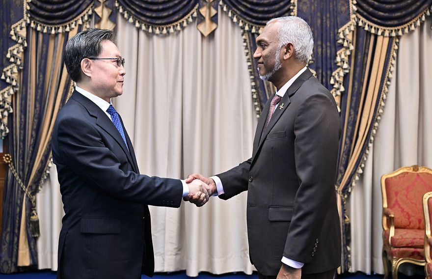 ރަސްމީ ދަތުރެއްގައި މި ވަގުތު ރާއްޖެ ވަޑައިގެން ހުންނެވި، ޑޮންގްމިން ރައީސް މުއިއްޒުގެ އަރިހަށް މިއަދު ކުރެއްވި އިހްތިރާމްގެ ޒިޔާރަތުގައި، އެ މަނިކުފާނު ވަނީ ރާއްޖޭގެ އިގުތިސާދީ އަދި އިޖުތިމާއީ ތަރައްގީ އަށް ޗައިނާއިން ދޭ ދީލަތި އެހީތެރިކަން ފާހަގަކުރައްވައި، ކުރިއަށް އޮތް ތަނުގައިވެސް ޗައިނާ އާއި ރާއްޖޭގެ ގުޅުން އިތުރަށް ބަދަހިކުރައްވާނެ ކަމުގެ ޔަގީންކަން ދެއްވައިފަ އެވެ.