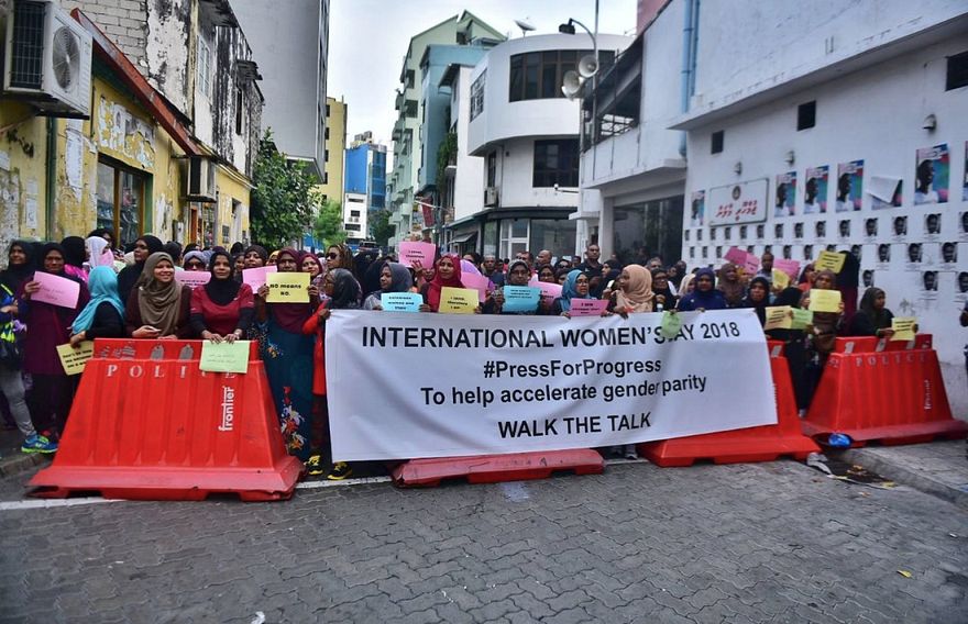 ބައިނަލްއަގުވާމީ އަންހެނުންގެ ދުވަސް ފާހަގަކުރުމަށް، ގުޅިފައިވާ ސިޔާސީ ޕާޓީތަކުގެ އަންހެން މެންބަރުން އިސްނަގައިގެން މިއަދު ހެނދުނު މާލޭގައި ބާއްވަން އުޅުނު ހިނގާލުމަށް ފުލުހުން ހުރަސް އަޅައި އެކަން ހުއްޓުވައިފި އެވެ.
