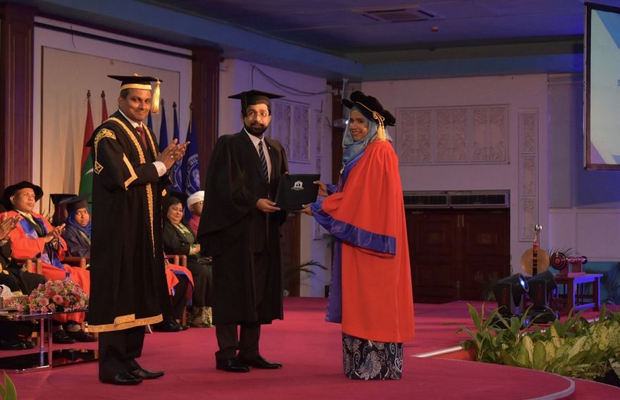 މޯލްޑިވްސް ނޭޝަނަލް ޔުނިވާސިޓީ (އެމްއެންޔޫ) ގައި ފުރަތަމަ ފަހަރަށް ދެ ދަރިވަރަކު ޕީއެޗްޑީ ހާސިލް ކޮށްފި އެވެ. މިއީ ރާއްޖޭގައި ފުރަތަމަ ހެދި ޕީއެޗްޑީ އެވެ.