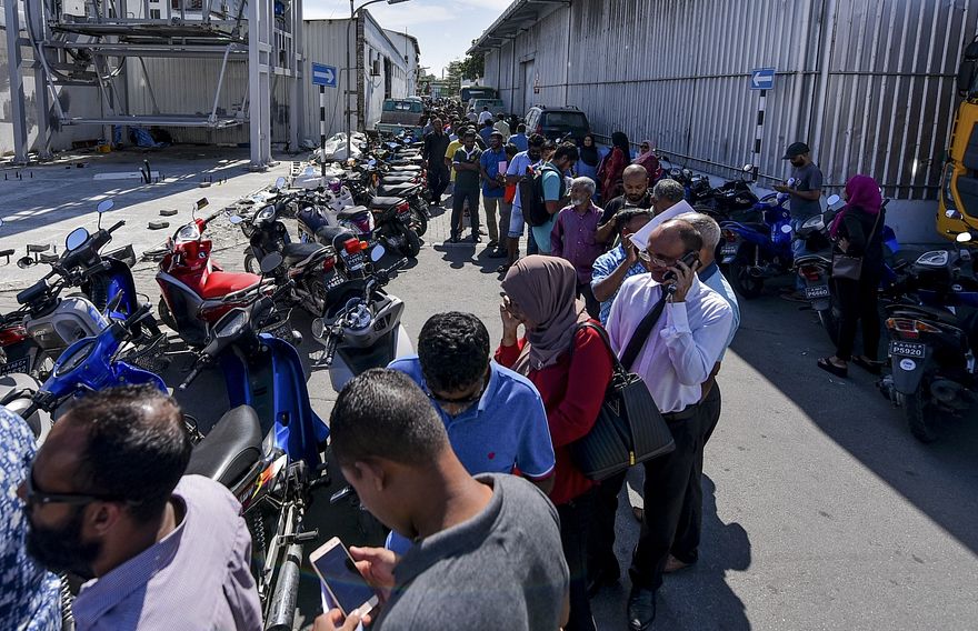 ގޯއްޗަށް ފޯމް ހުށަހަޅަން ކިއޫގައި ތިބި މީހުން މިއަދު އަވީގައި.---ފޮޓޯތައް: އަހުމަދު ނިޝާތު/މިހާރު