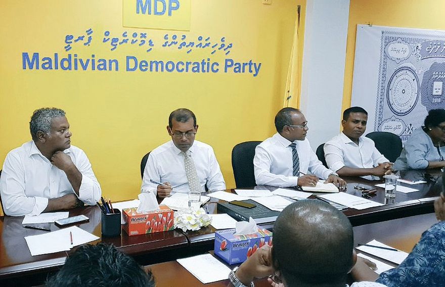 އެމްޑީޕީން ރައްޔިތުންގެ މަޖިލީހުގެ އިންތިޚާބުގައި ހުރިހާ ދާއިރާއެއްގެ ގޮނޑިތައް ހޯދުމާ ގުޅޭ ގޮތުން މިދިޔަ ބުރާސްފަތި ދުވަހު އެ ޕާޓީގެ އޮފީހުގައި ބޭއްވި ބައްދަލުވުމުގައި އެމްޑީޕީގެ ރައީސް މުހައްމަދު ނަޝީދާއި އެމްޑީޕީގެ ޗެއާޕާސަން ހަސަން ލަތީފާއި ޗެއާޕާސަންގެ ނައިބު އަލީ ނިޔާޒް ބައިވެރިވެވަޑައިގެންނެވި އެވެ. އަދި އެމްޑީޕީގެ ގައުމީ މަޖިލީހުގެ ގިނަ އަދަދެއްގެ މެމްބަރުން ބައިވެރިވެވަޑައިގެންނެވި އެވެ.