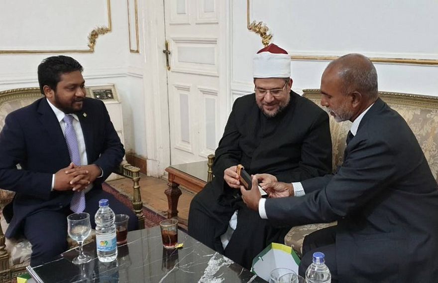 އެ ގައުމަށް ވަޑައިގެން ސަރުކާރުގެ ވަފުދުން ވަނީ ދީނީ ކަންތައްތަކާ ބެހޭ މިނިސްޓަރު ޑރ. މުހައްމަދު މުހުތާރު ޖުމާ އާއި މިސްރުގެ މުފްތީ ޑރ. ޝައުކީ އިބްރާހިމް އައްލާމްއާ ބައްދަލުކުރައްވައިފަ އެވެ.