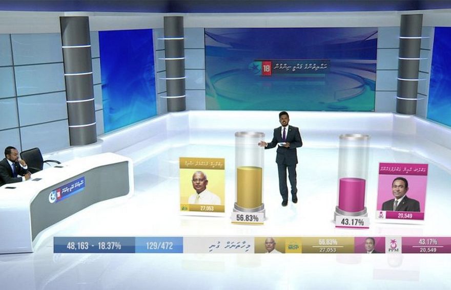 އިންތިޚާބުތަކުގެ ނަތީޖާ ޓީވީއެމުން އާއްމުކޮށް ބެލުންތެރިންނަށް ކިޔައިދެނީ ކުރިމަތީގައި ހުންނަ ޓީވީ ސްކްރީނަށް ބަލައިގެންނެވެ. އެކަމަކު، އޮގްމެންޓެޑް ރިއަލީ ޕީއެސްއަމަށް ގެނައީ، ޕްރެޒެންޓަރުގެ ފަހަތުން ނަތީޖާ ބާތައް އަރާ ގޮތް ދެއްކުމަށެވެ.
