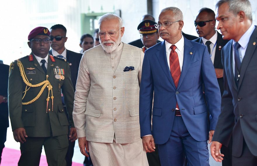 ވެރިކަމުގެ ދެ ވަނަ ދައުރަކަށް ހުވާ ކުރައްވައި މޯދީ ގައުމުން ބޭރަށް ކުރެއްވި ފުރަތަމަ މަންޒިލެއްގެ ގޮތުގައި އިޚްތިޔާރު ކުރެއްވީ ރާއްޖެ އެވެ. ދެ ދުވަހުގެ ރަސްމީ ދަތުރުފުޅުގައި މިއަދު ރާއްޖެ ވަޑައިގަތުމުން ހޫނު މަރުހަބާއެއް ދަންނަވައި ރައީސް އިބްރާހިމް މުހައްމަދު ސޯލިހް ވަނީ ދެ ގައުމުގެ ޒަމާންވީ ގުޅުމަށް ބުރޫއަރާ ފަދަ ކަމެއް ރާއްޖެ އިން ނުކުރާނެ ކަމުގެ ޔަގީންކަން ދެއްވައިފަ އެވެ.