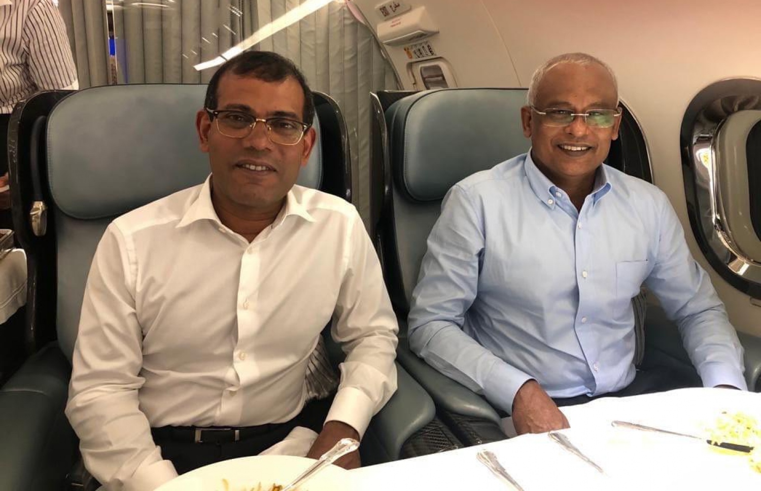ރައްޔިތުންގެ މަޖިލިހުގެ ރައީސް، މުހައްމަދު ނަޝީދު އެންމެ ފުރަތަމަ ޓުވީޓު ކުރެއްވީ، މިދިޔަ ހުކުރު ދުވަހުގެ ރޭ ޔޫއޭއީއަށް ފެއްޓެވި ދަތުރުފުޅުގައި، ހާއްސަ ޖެޓްގައި ރައީސް އިބްރާހިމް ސޯލިހާ އެކު އިންނެވި ފޮޓޯފުޅެވެ.