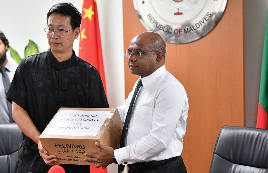 ކޮރޯނާވައިރަސް ފެތުރި ޗައިނާ އަށް ކުރިމަތިވެފައިވާ ދަތި ހާލުގައި އެ ގައުމަށް އެހީވުމުގެ ގޮތުން ރާއްޖޭން ޗައިނާ އަށް އެއް މިލިއަން ދަޅު މަސް ހަދިޔާކުރަން ނިންމައި، ރަމްޒީ ގޮތުން މި ހަދިޔާ ހަވާލުކޮށްފި އެވެ.