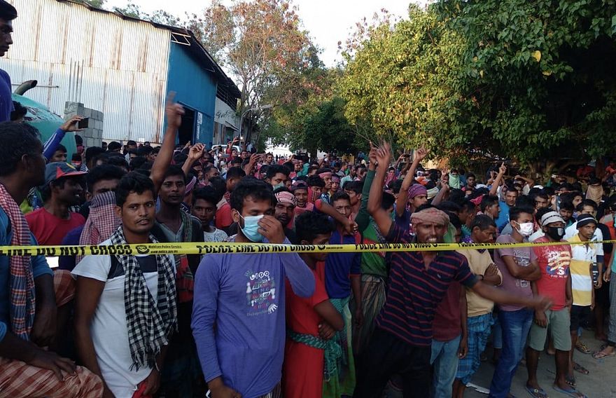 ރާއްޖޭގައި ކޮވިޑް-19 އެންމެ ބޮޑަށް ފެތުރިފައި އޮތީ އެއް ތަނެއްގައި ތޮއްޖެހިގެން އުޅެމުން ދާ ބަގްލަދޭޝް މީހުންގެ ތެރޭގަ އެވެ. އެހެންކަމުން މާލޭގައި ހުރި އެފަދަ އެތައް ތަނަކުން ގުޅިފަޅަށާއި ހުޅުމާލެއަށް އެތައް ސަތޭކަ ބަޔަކު މިހާރު ވަނީ ބަދަލުވެފަ އެވެ. އެކަމަކު ތިލަފުށީގެ ހަޅުތާލުގެ ފޮޓޯތަކުން ފެންނަނީ ވަރަށް ތޮއްޖެހުން ބޮޑުކޮށް އަދި ރައްކާތެރިކަމުގެ ފިޔަވަޅު ވެސް ނެތި، ބިދޭސީން އުޅެމުން ދާ ތަނެވެ.
