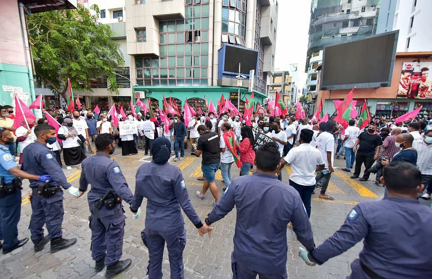 އިދިކޮޅު ކޯލިޝަނުން މިހާރު މާލޭގައި ކުރިއަށް ގެންދާ ސިލްސިލާ މުޒާހަރާތަކަކީ ހެލްތް ޕްރޮޓެކްޝަން އޭޖެންސީ (އެޗްޕީއޭ) ގެ ގައިޑްލައިނާ ޚިލާފް އެއްވުންތަކެއް ކަމަށް ބުނެ އެ އެއްވުންތައް ހުއްޓުވައި، ފުލުހުން ގެންދަނީ ވަކިވަކި މީހުން ވެސް ޖޫރިމަނާ ކުރަމުންނެވެ. އަދި އެ ކޯލިޝަންގެ ބައެއް ބޭފުޅުން ހައްޔަރު ވެސް ކުރި އެވެ.