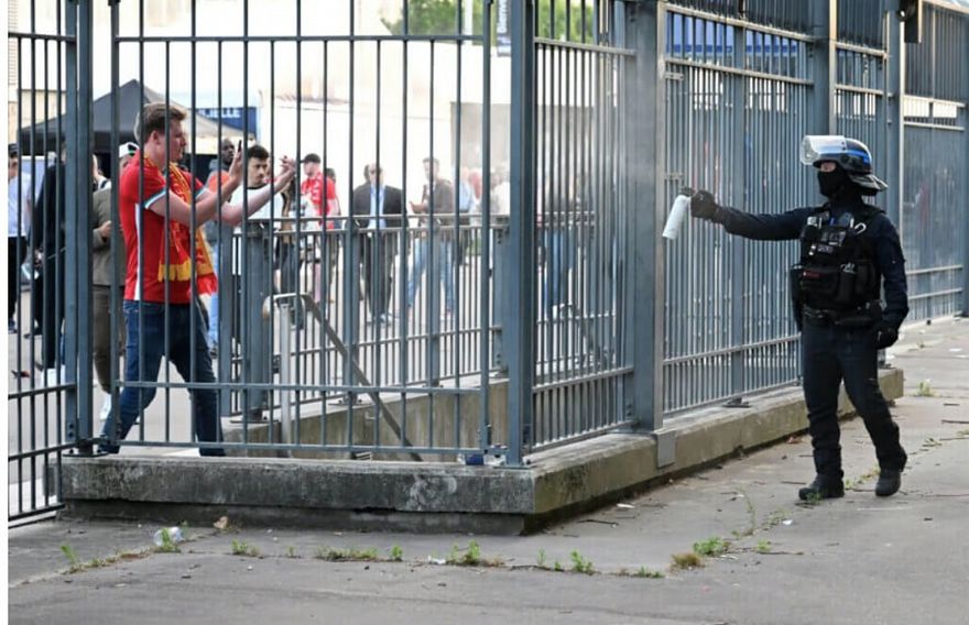 ރަޝިއާގައި ކުޅެން އޮތް މެޗު ފްރާންސަށް ބަދަލު ކުރުމަށް ފަހު ކުޅުނު މެޗުގެ ކުރިން ލިވަޕޫލްގެ ސަޕޯޓަރުންނަށް ދަނޑަށް ނުވަދެވި ހަމަނުޖެހުންތަކެއް ހިނގި އެވެ. ދަނޑުގެ ސެކިއުރިޓީ ބަލަހައްޓަން ތިބި ފްރާންސްގެ ފުލުހުން ވަނީ ލިވަޕޫލްގެ ސަޕޯޓަރުންގެ މޫނަށް ޕެޕާ ސްޕޭރޭ ވެސް ޖަހައިފަ އެވެ.