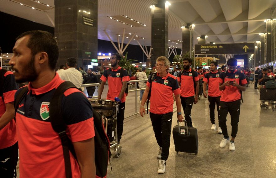 ސާފް ޗެމްޕިއަންޝިޕްގައި ވާދަކުރާ ގައުމީ ފުޓްބޯޅަ ޓީމުން، ލަންކާ މަގުން އިންޑިއާގެ ބެންގަލޫރަށް ދިއުމަށް ކޮލަމްބޯގެ ޓްރާންސިޓްގައި 40 އަށް ވުރެ ގިނަ ގަޑިއރު ހޭދަ ކުރުމަށް ފަހު ރޭ ބެންގަލޫރަށް ހިނގައްޖެ އެވެ.