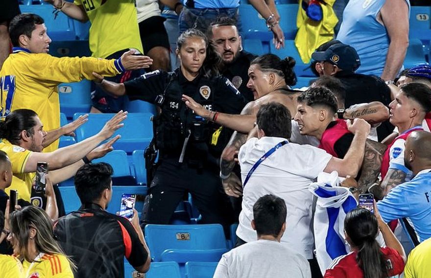 އާޖެންޓީނާ އިން ކަންބޮޑުވުން ފާޅު ކޮށްފައި މިވަނީ ކޮލަމްބިއާއާ އިން ސެމީ ފައިނަލްގައި އުރުގުއޭ ބަލިކުރި މެޗަށް ފަހު، އުރުގުއޭގެ ފޯވާޑް ޑާވިން ނޫނޭޒް އާއި އިތުރު ކުޅުންތެރިން ސަޕޯޓަރުންގެ ތެރެއަށް ގޮސް ހިނގި ކުރިމަތިލުންތަކުގައި ބައިވެރިވެފައިވެފައިވާ ދަނޑިވަޅެއްގަ އެވެ.