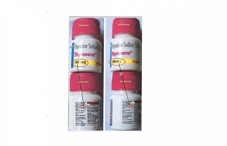 އެމްއެފްޑީއޭ އިން ނެރުނު ނޫސްބަޔާނެއްގައި ބުނީ އިންޑިއާގެ ޖެނެރިކްސް އެލްއެލްޓީ ކުންފުނިން އުފައްދާ، ތައިރޮޑް ބައްޔަށް ބޭނުންކުރާ ބޭހެއް ކަމަށްވާ Thyronorm 100 mcg ގެ ކައުންޓަފީޑް ނުވަތަ ފޭކް ޕްރޮޑަކްޓެއް ފެނިފައިވާ ކަމަށް އެ ގައުމުގެ ތެލަންގަނާ ޑްރަގްސް ކޮންޓްރޯލް އެޑްމިނިސްޓްރޭޝަނުން އަންގަފާއިވާ ކަމަށެވެ.