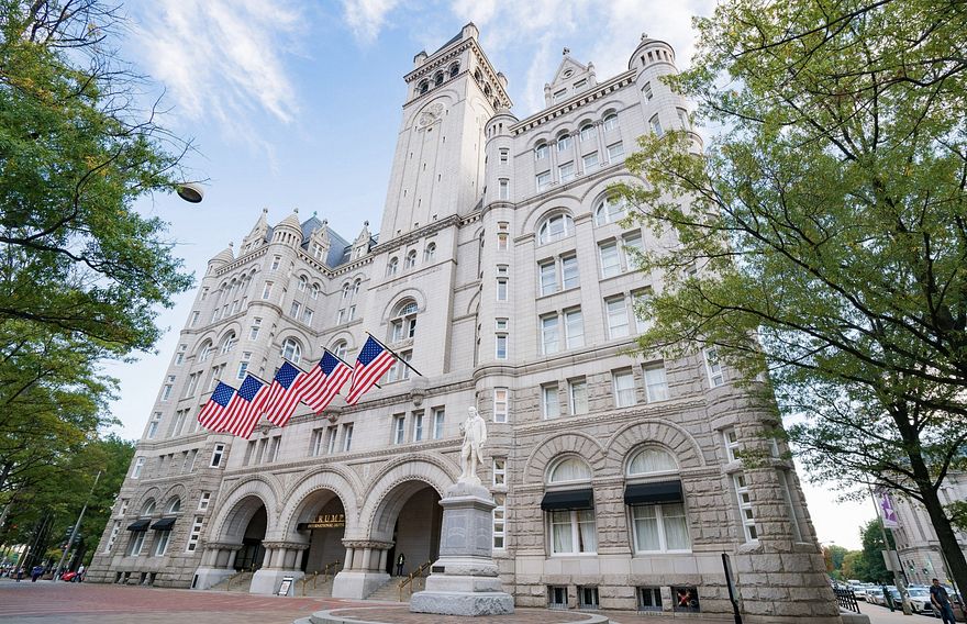 ކުރިން އެމެރިކާގެ ޕޯސްޓް އޮފީސް ޑިޕާޓްމަންޓްގެ ހެޑްކުއާޓަރުގެ ގޮތުގައި ހިންގި އިމާރާތް ޓްރަމްޕް ގަތީ 60 އަހަރުގެ ލީސް އެގްރިމަންޓެއްގެ ދަށުން 2012 ގަ އެވެ. ވޮޝިންޓަންގައި ދެވަނަ އަށް އެންމެ އުސް އިމާރާތް، ޓޫރިސްޓް ހޮޓަލެއްގެ ގޮތުގައި އާންމުކޮށް ހުޅުވާލީ 2016 ގަ އެވެ. އެ އިމާރާތް ހުންނަނީ އެމެރިކާގެ ރިޔާސީގަނޑުވަރު، ވައިޓް ހައުސްއާ މޭލެއްހާ ކައިރީގަ އެވެ.