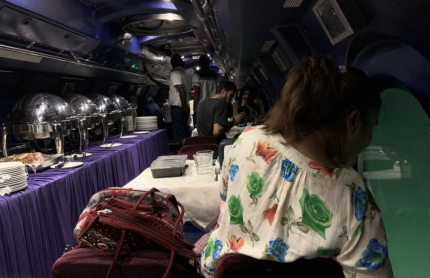 ވޭލް ސަބްމެރިންގައި ތައްޔާރުކުރާ ބުފޭ އިން ކަނޑުގެ 122 ފޫޓު އަޑީގައި، މަސްމަހާމެހީގެ މާހައުލުގައި ތިބެ ކާނާ އަށް އިންސާފުކޮށްލެވޭނެ އެވެ. އަދި މިއީ ކަނޑު އަޑި ބަލައިލުމުގެ އެއް ގަޑިއިރުގެ ދަތުރަކަށް ވެސް ވާނެ އެވެ.